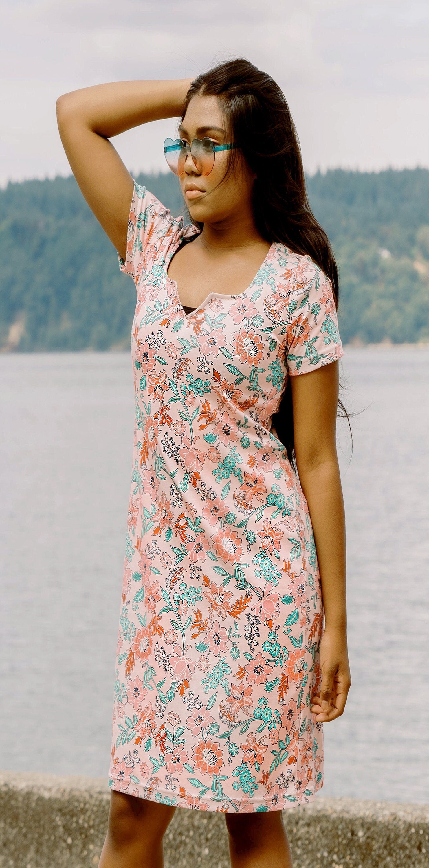 Introducing the Pink Floral Iris Neck Short Sleeve Dress by Marina Atelier – a captivating blend of innovation and timeless elegance. Marina's artistry shines in the exclusive Iris Neck style, transitioning from square to V-neck for a distinctive detail. Adorned with a delightful pink floral pattern, this dress exudes romance and sophistication. Thoughtfully tailored to flatter your silhouette, the Iris Neck design adds a contemporary touch while maintaining timeless charm. Elevate your wardrobe with this versatile statement piece, perfect for any occasion. Embrace Marina's artistic vision in this harmonious blend of vibrant color and distinctive design.